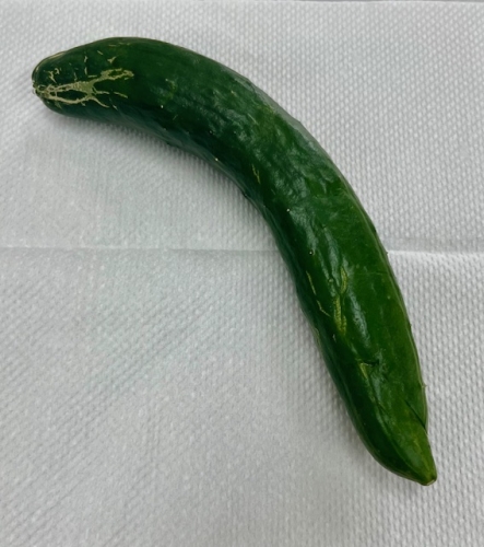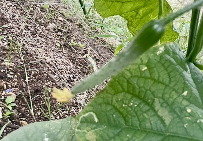 初めてのキュウリ収穫です。 まだ1本ですが・・・ 何本か小さいキュウリも出来ているので、もう少しで収穫できそうです。
