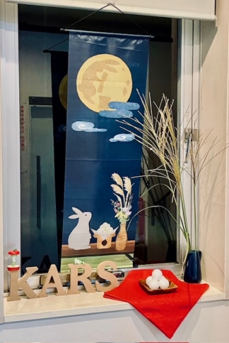 ススキも飾り、お月見気分です! 今年の中秋の名月は、10月6日(月)晴れるといいな。