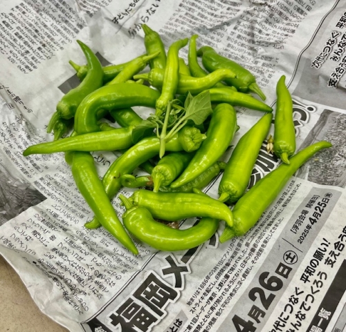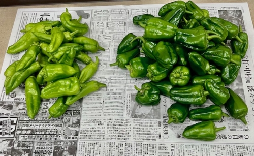 唐辛子をたくさん収穫しました。 ピーマンとナスは、収穫しても次々に実が付いています。