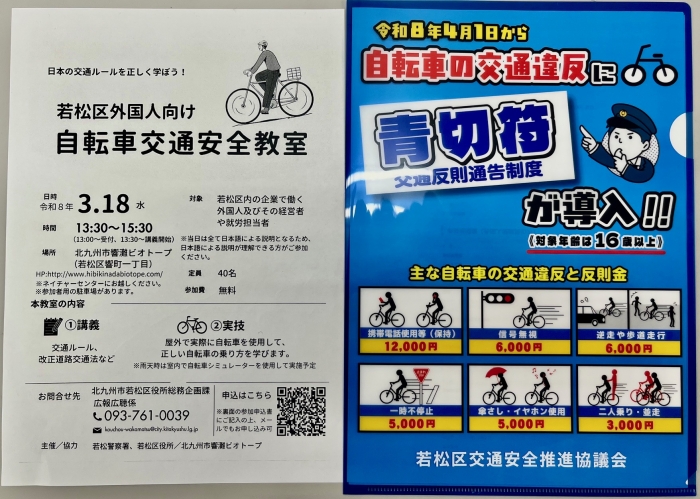 3月18日(水)響灘ビオトープで外国人向けの自転車交通安全教室に参加しました。