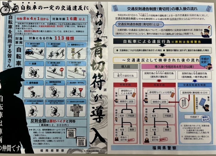 令和8年4月1日から自転車の一定の交通違反(対象年齢16歳以上)に